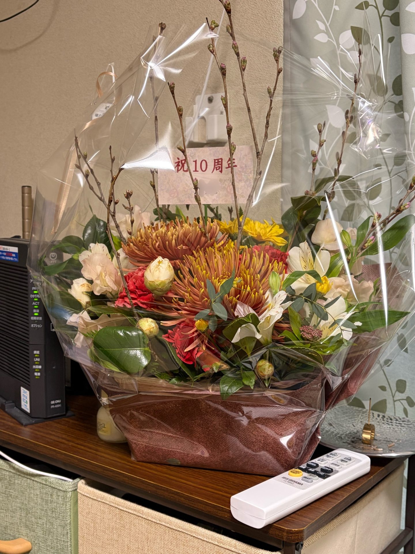 そして、節目の年を思い出させてくれた立派な花束と、こうした再会のきっかけを与えてくれた患者さんに、あらためて感謝します。