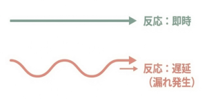 一方、杭が傾きロープがたわむとシートもたわんで骨盤底筋は筋力が発揮されるまでに時間がかかるせい、くしゃみや力んだ時など腹圧の急激な上昇に間に尿道を閉めるタイミングを逃して漏らしてしまいます。