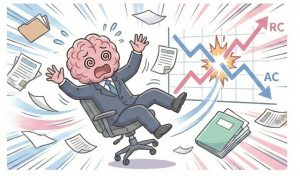 そんな状態でも大きな動きがなければ平静を装うこともできるが、頭を急に動かしたり、振り向いたりと、現状から大きく変化する動きがあった時になって初めて、感覚情報から伝わる現状(AC)と売り上げ目標(RC)との差が乖離している事実に気づく。